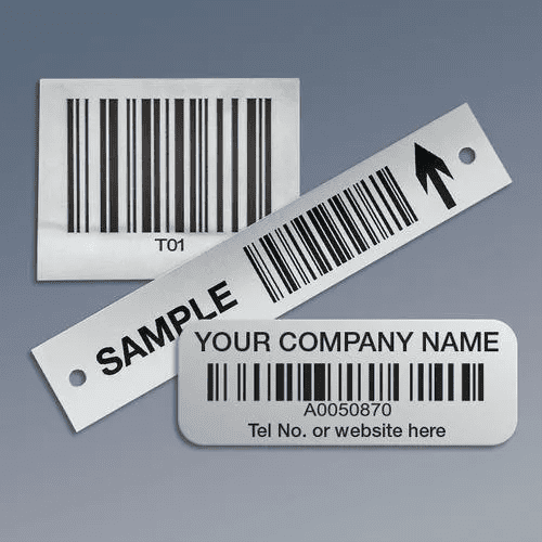 - Foil Metal Asset Labels (3–8 mil) – Tough aluminium asset labels for curved surfaces. Thin, inexpensive, and suitable for a wide variety of applications .